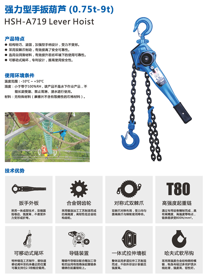 8.起重鏈條是特殊合金鋼制作并經(jīng)過熱處理,不能私自進行焊接或改裝。